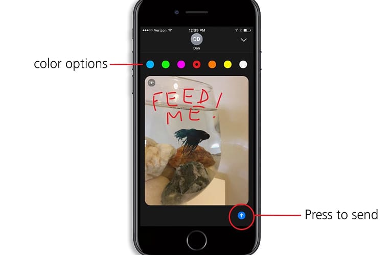 Apple has added a drawing tool in its new Messages feature in iOS 10. So after adding a photo to your message and before sending it, you can use the Markup tool to draw something on it.