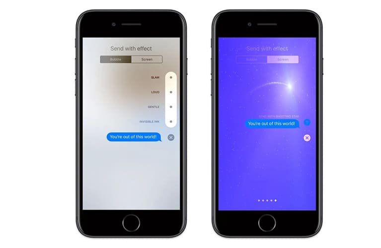 To use Screen effects, just type a message and use long-press or force touch on the Send button till the Bubble screen is activated. Now, tap on the Screen button at the top of the screen to view full-screen animations. At present, there are seven screen effects featured within the Messages on iOS 10: